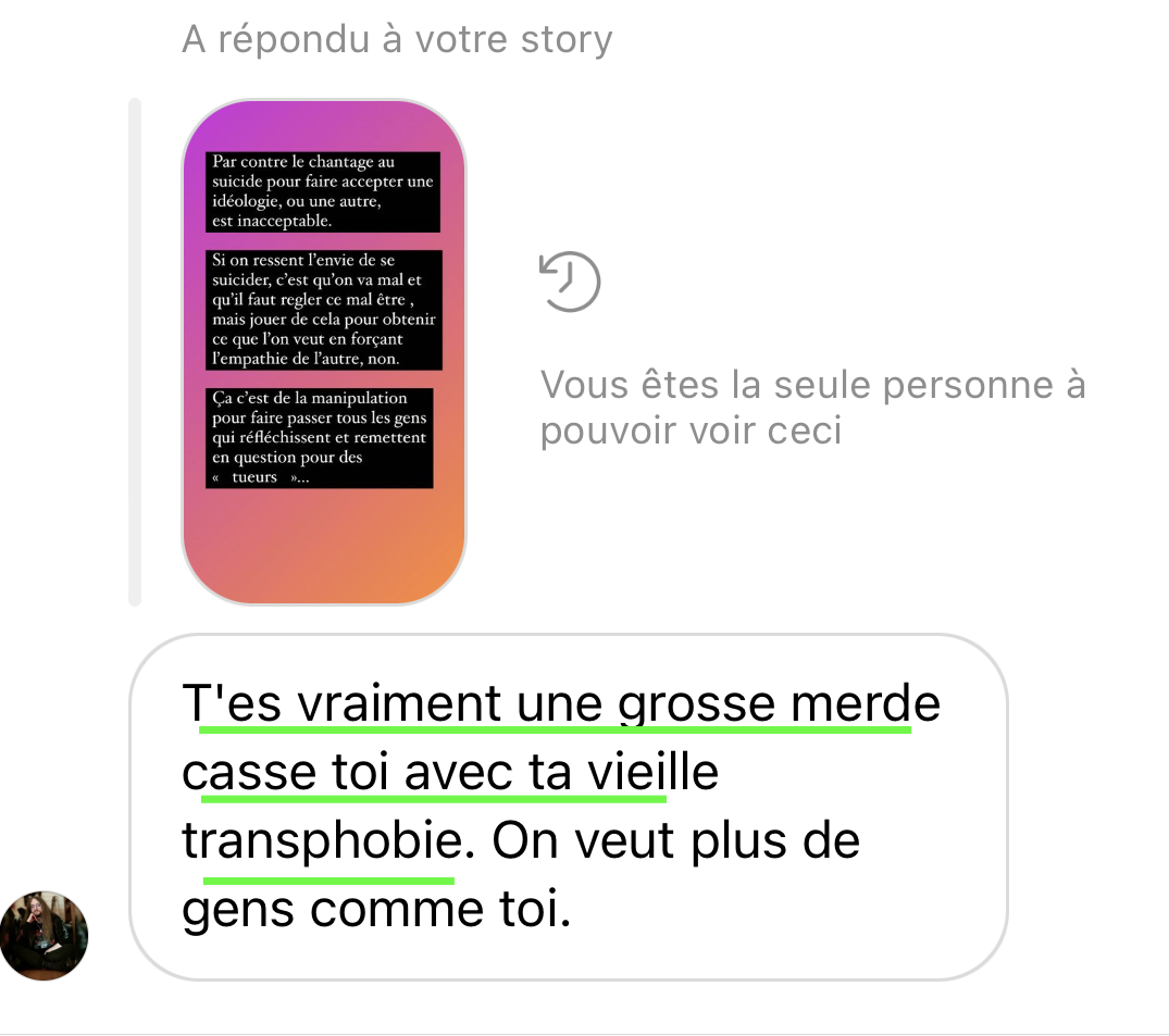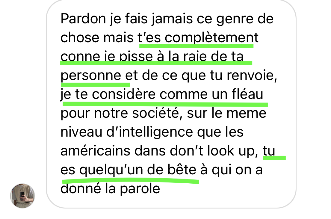 Nous recevons constamment des messages injurieux et haineux qui nous traitent de tous les noms, et qui nous souhaitent le pire.